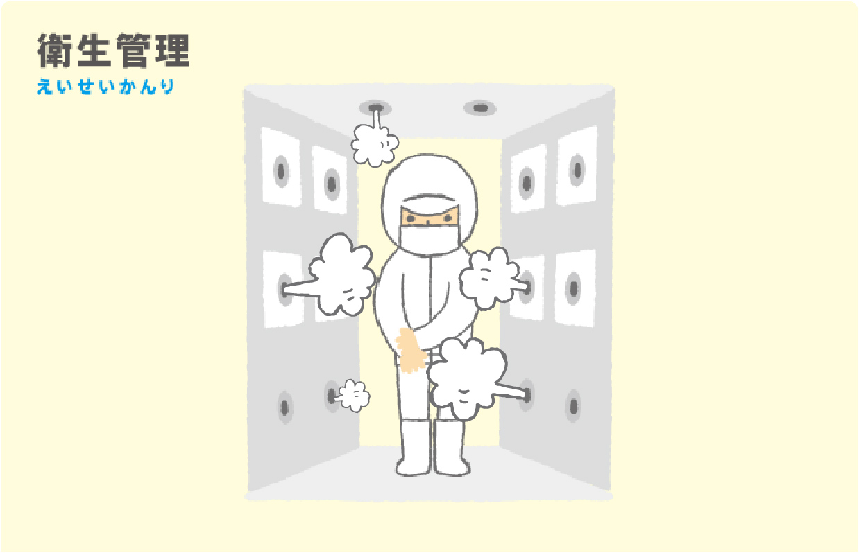 Mama:食品を扱う工場内は衛生管理が大切。ここではちゃんと白衣に着替えて、着衣のホコリもしっかり粘着ローラーで除去してから入場OKなのよ。