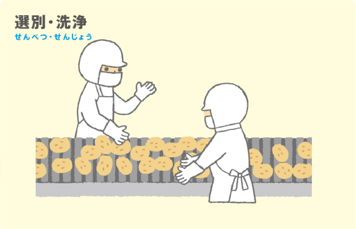 Mama:土をしっかり取り除くため、ブラシ洗浄や目視選別を何度も繰り返して、品質のいいじゃがいもだけを厳選しているのね。