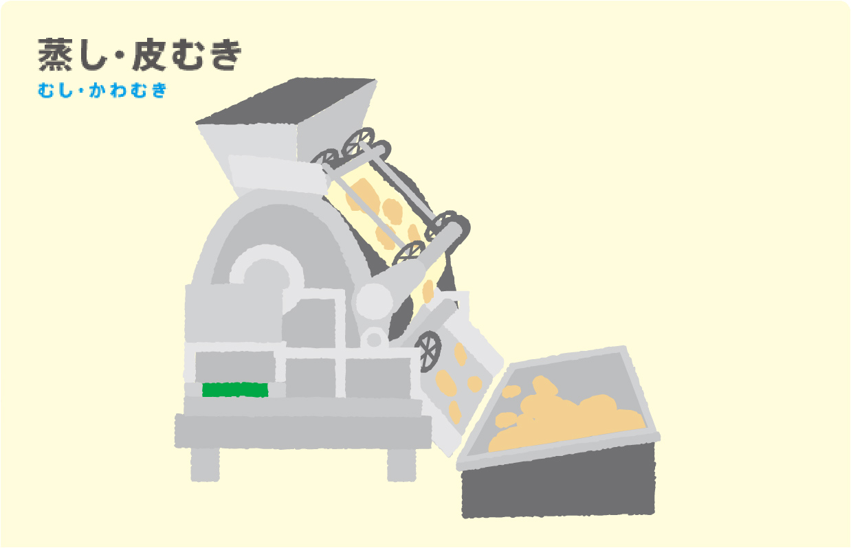 Mama:だから、ここでは、皮ごと蒸して、裏ごしの要領で皮むきすることで、栄養成分やうまみ成分をにがさないようにしているの。