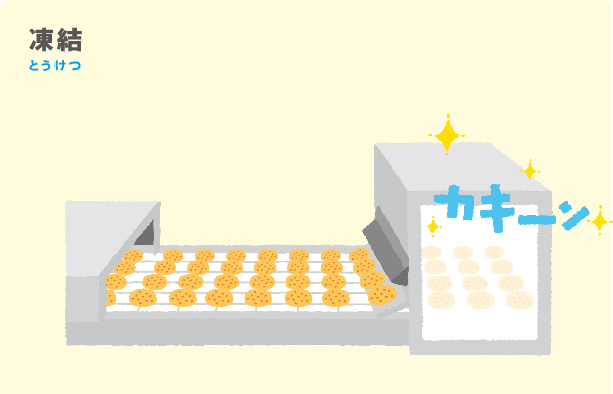 Papa:スパイラルフリーザーっている冷凍庫で急速凍結することで、作りたてのコロッケの状態をキープさせるんだ。