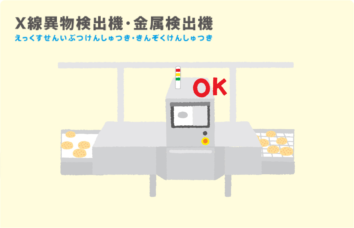 Papa:X線異物検出機だよ。コロッケのなかに金属や石など、小さな異物が混入していないか二重でチェックしているんだよ。