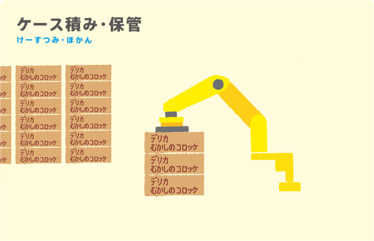 Mama:本当!生きているみたいになめらかな動きをするわね、このパレタイザーシステムで自動荷積みすれば1つのパレットの...