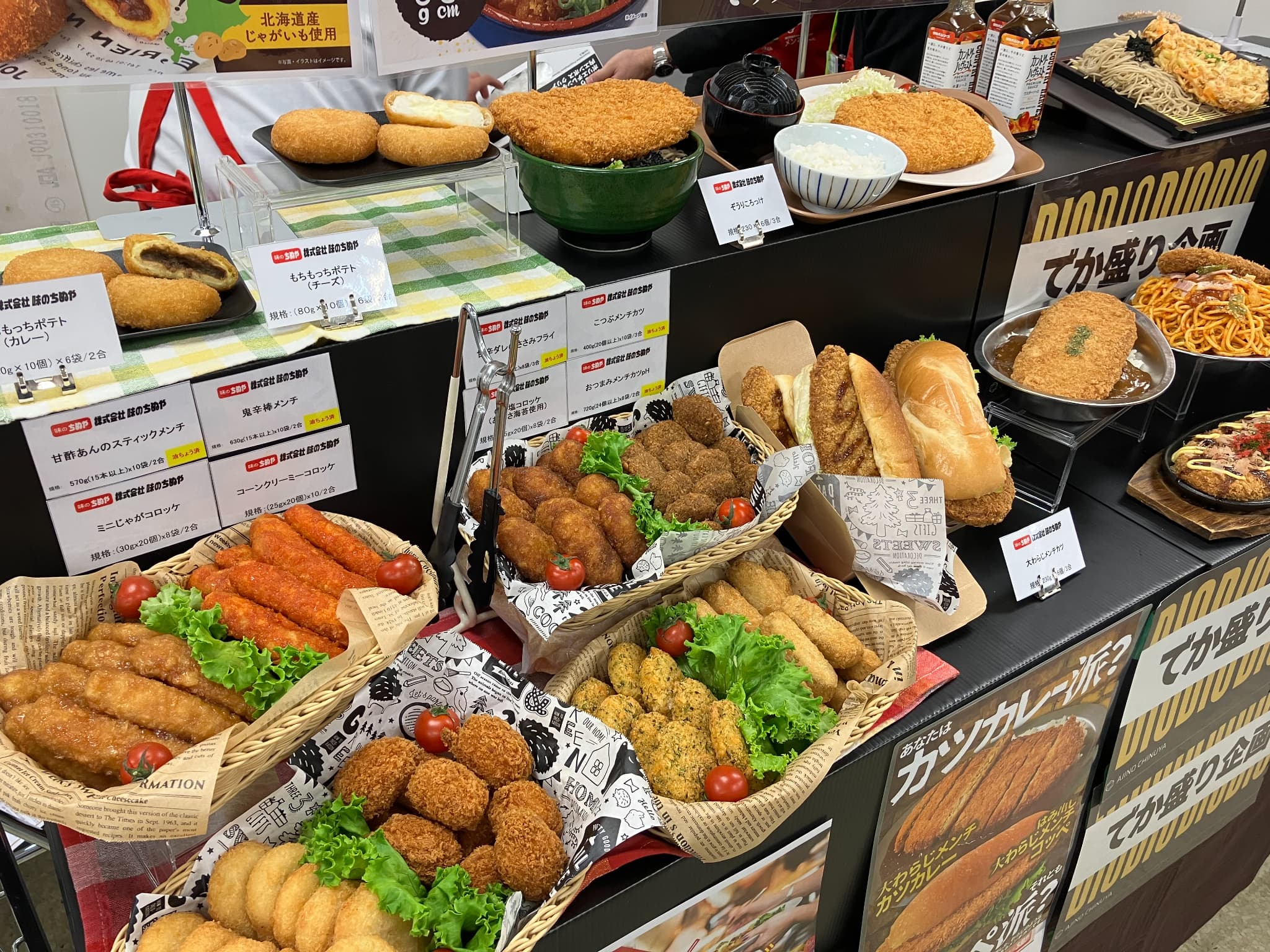 物価高で原材料価格が上がる中、お求めやすい価格でお腹いっぱいになってほしいとビッグサイズの商品を並べ「デカ盛り企画」としてご案内をしました。